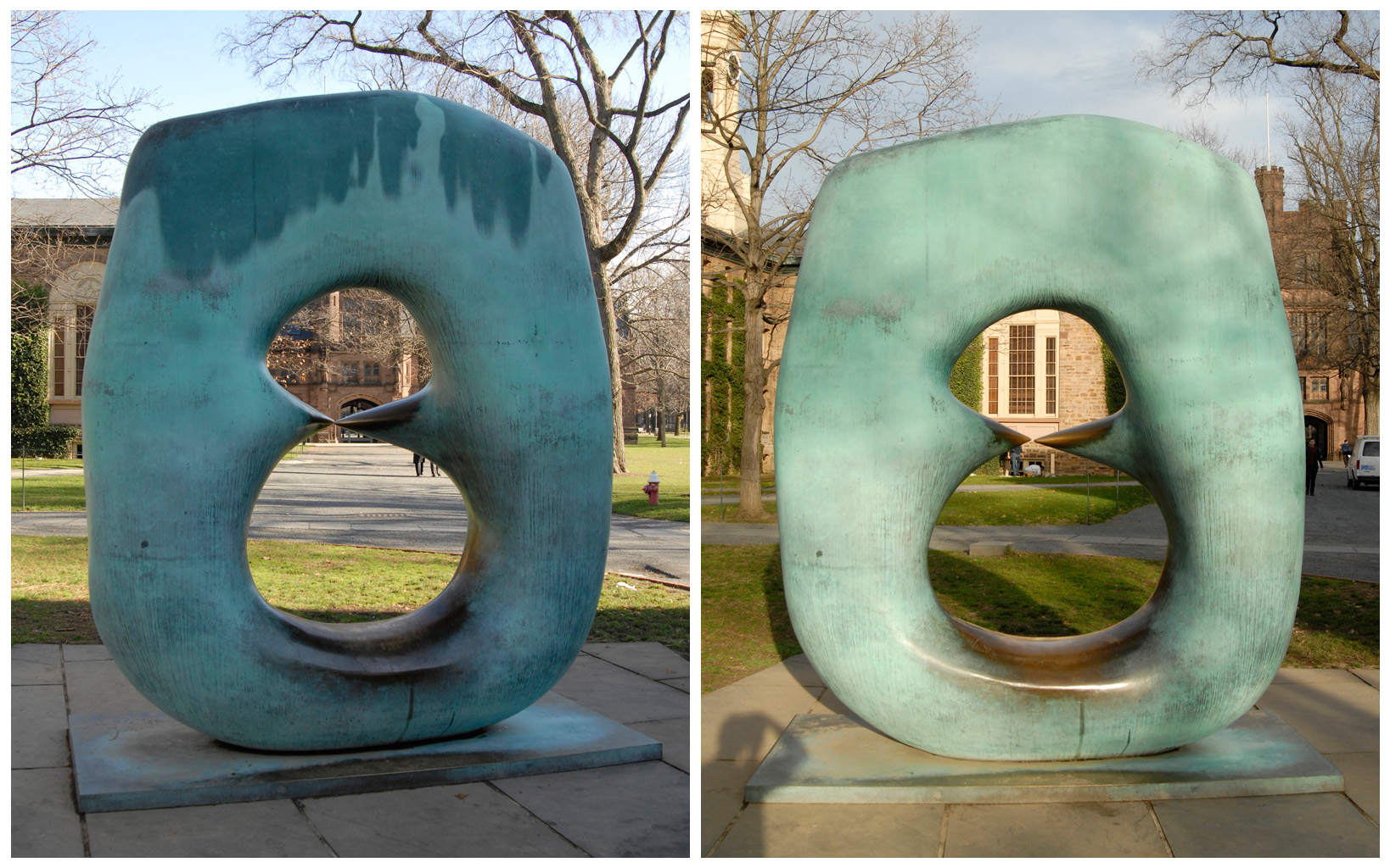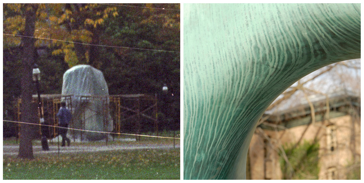 the green patina soon began to drool from the bronze (below right). Of course, the