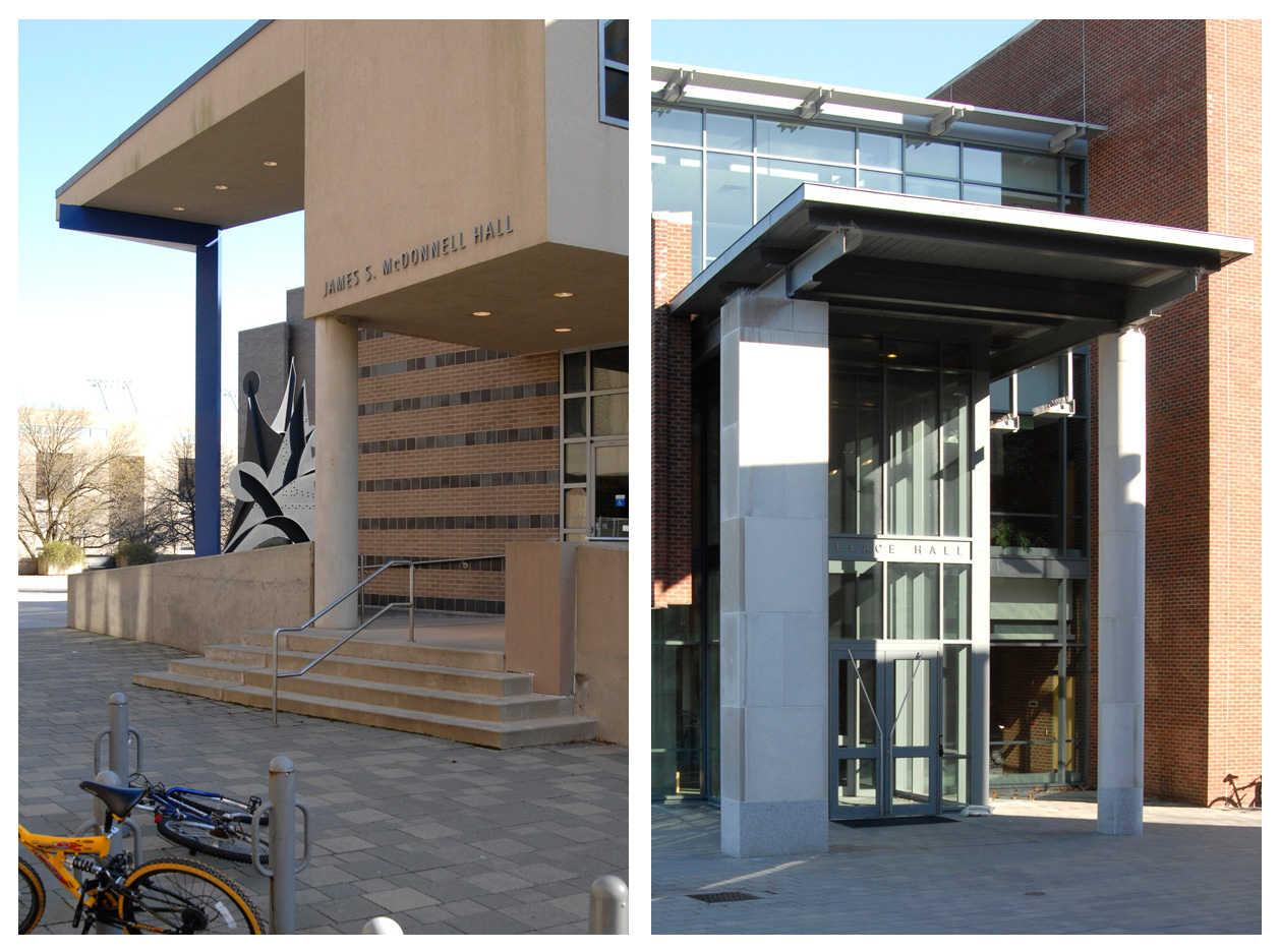 one, the architect of McDonnell Hall (below left) placed two of them side by side, one of