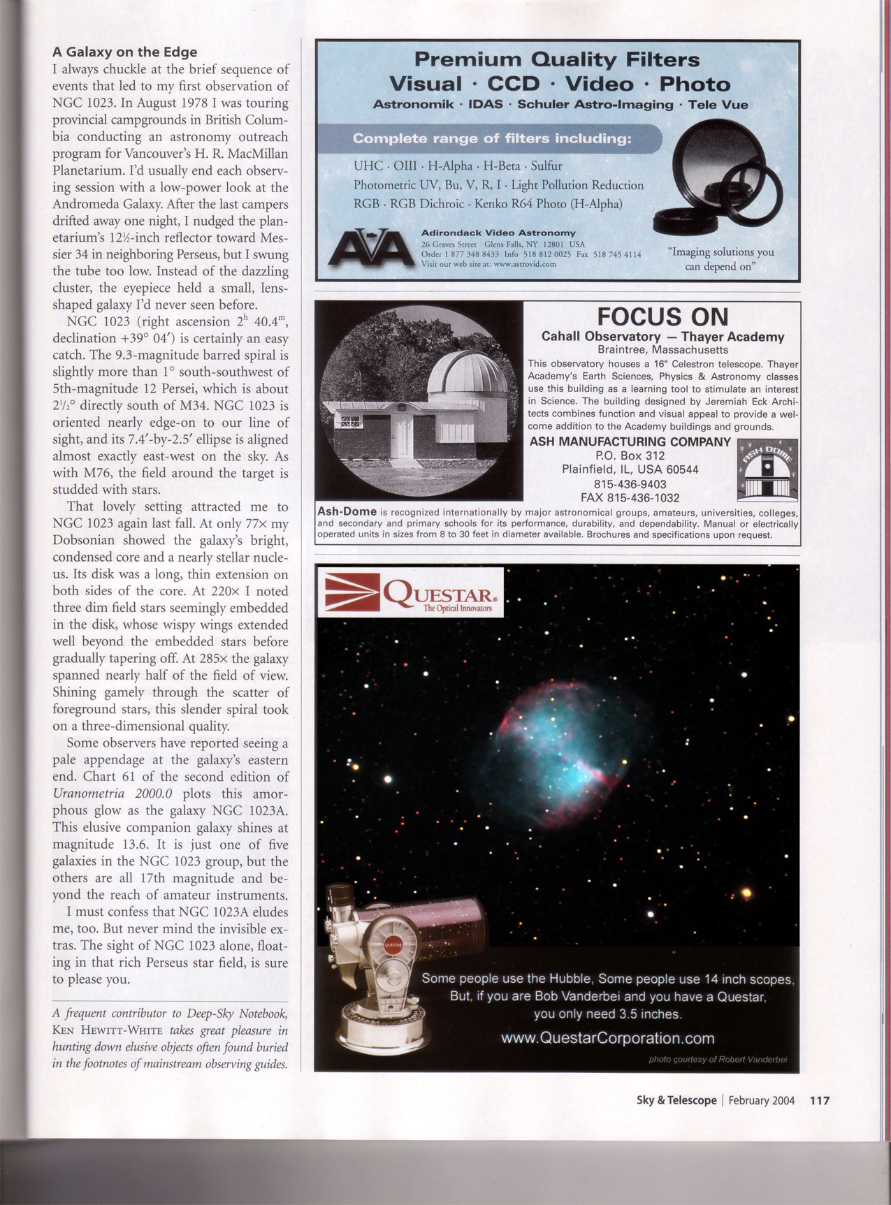 This ad ran in Sky&Telescope, Astronomy, and Sky News monthly for about 6 months starting in July, 2003.